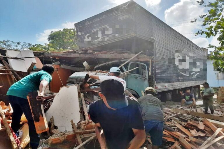Com base nas informações colhidas pela equipe PRF que atendeu a ocorrência, o condutor de um caminhão baú M.BENZ/L 1114, azul, placas do estado do Pará, teria cochilado ao volante, momento em que o veículo se desgovernou, saiu da pista, quebrou a calçada de uma igreja e colidiu de frente com uma residência. Dois moradores da casa foram atingidos e tiveram ferimentos leves, sendo um homem de 45 anos de idade e uma mulher de 31 anos. O condutor do caminhão, um homem de 38 anos, ficou gravemente ferido e foi levado para um hospital daquele município.