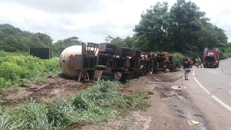 A empresa responsável pelo veículo e pela carga estava avaliando se havia necessidade de fazer o transbordo do gás para, em seguida, realizar o destombamento da carreta.