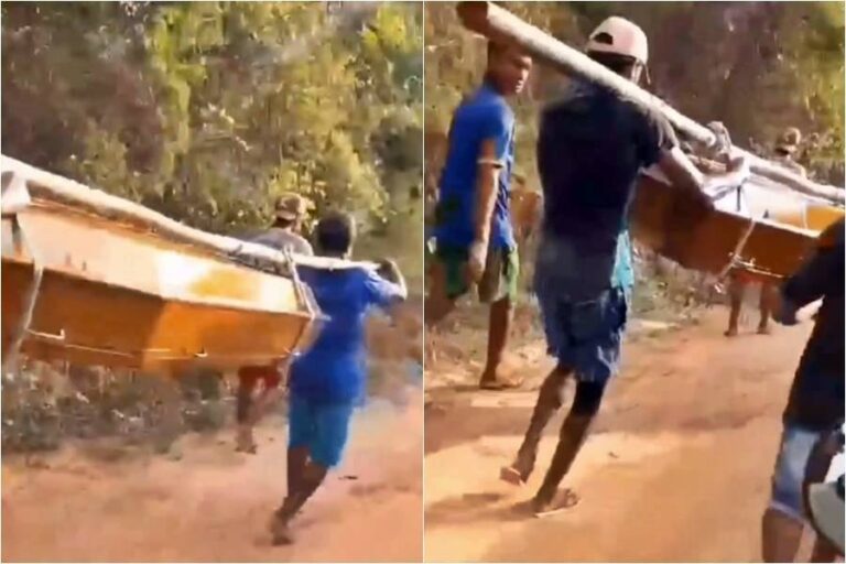 Um vídeo viralizou nesta sexta-feira (22), nele o que aparenta ser um cortejo e ao mesmo tempo uma empreitada de amigos do falecido, naquele que deveria ser um momento de conforto para a família e acaba se tornando um calvário que percorreu 9km para enterrar o falecido em uma cova de cemitério. Para aguentar a caminhada, dois homens se revezam numa espécie de “rede” improvisada com um tronco de árvore e uma corda amarrada ao caixão. A situação é fruto da péssima gestão da prefeita Cristiane Varão (PL), que abandonou as vias rurais do município e deixou o povo que reside no interior órfão da trafegabilidade.