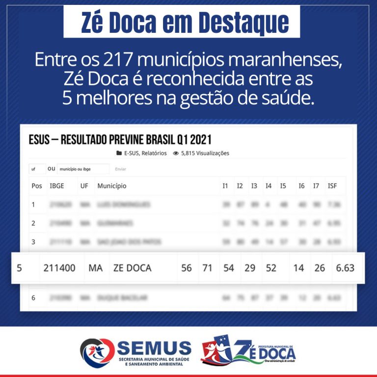 Início » Em Zé Doca, gestão de saúde está em 5° melhor no estado