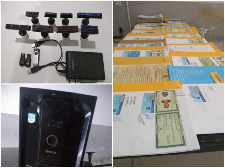 Na casa do investigado foram encontrados e devidamente apreendidos para fins de investigação, um computador, pendrives, HD externo, aparelho celular, documentos pessoais de dezenas de pessoas que contrataram o investigado. Também foram localizados diversos carimbos com os nomes de algumas das faculdades e como o nomes de cargos da esfera universitária, que eram usados para as práticas das fraudes.