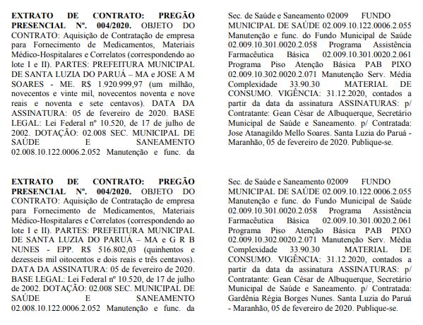 Só em 2020 a Prefeitura pretende torrar mais de R$ 2,4 milhões com duas empresas fornecedoras de medicamentos, o problema é que não é a primeira vez que valores exorbitantes são taxados em contratos envolvendo a mesma gestão e empresas do ramo, todavia sem muito êxito já que de acordo com registros, vários casos já foram confirmados este ano de moradores que procuraram os postos em busca de medicamentos e tiveram que retornar as suas residências sem o almejado. Cabe agora ao Ministério Público fazer seu papel e fiscalizar o uso indevido ou não do dinheiro público.